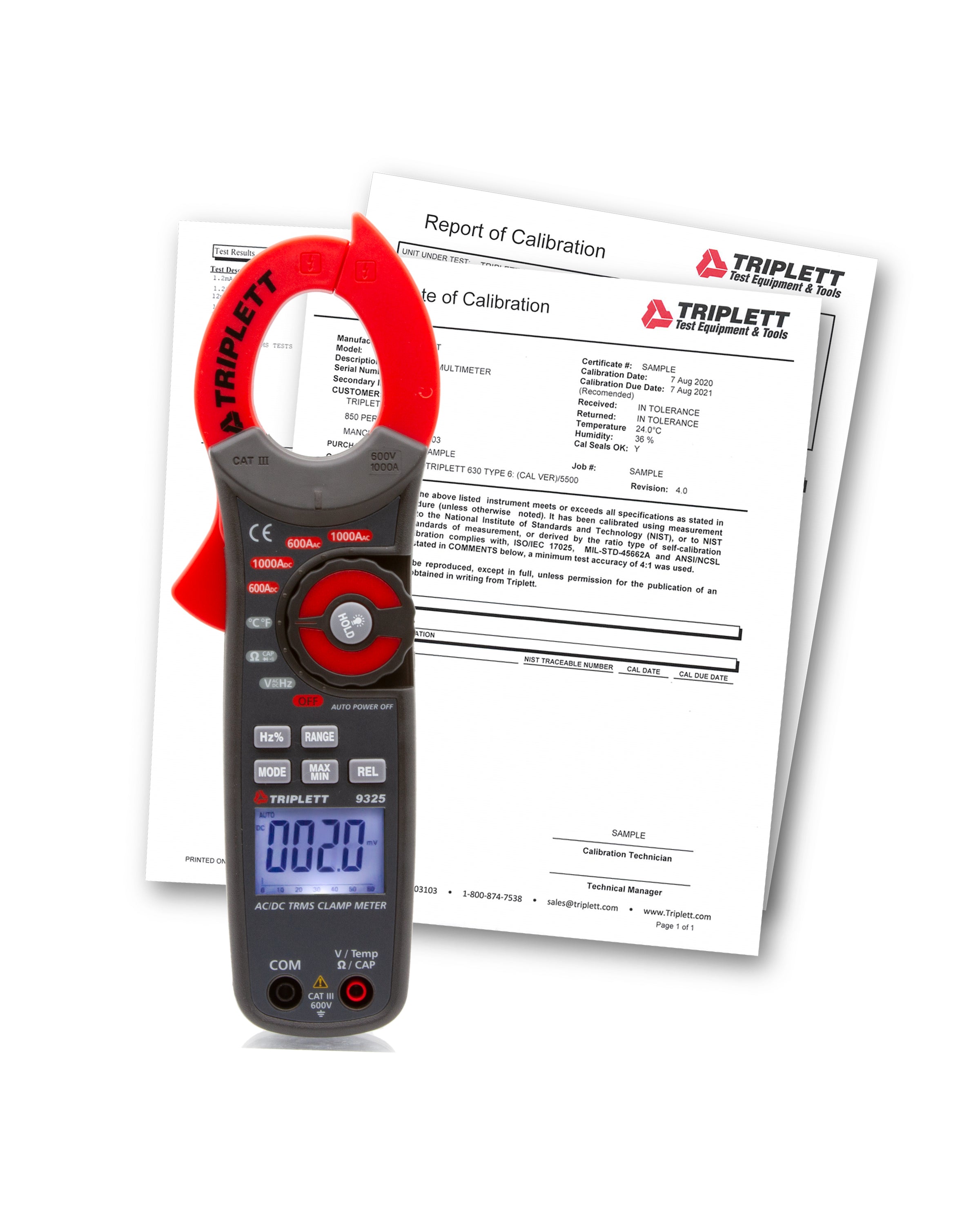 El Triplett 9325-NIST es un amperímetro de pinza CA/CC de 3 3/4" (6000 cuentas) y 1000 A de verdadero valor eficaz con pantalla LCD retroiluminada. Ofrece una amplia variedad de funciones de medición, incluyendo corriente CA/CC, voltaje CA/CC, resistencia, temperatura, capacitancia, continuidad, prueba de diodos y detector de velocidad sin contacto (VSC). Su carcasa sobremoldeada de goma ofrece resistencia a impactos y caídas en un diseño ergonómico y elegante, y su función de apagado automático, fácil de usar, ayuda a maximizar la duración de la batería. Con un diseño CAT III 600 V, ofrece una resistencia superior a daños por sobretensiones transitorias en cualquier entorno industrial exigente. El modelo 9325 es ideal para diversas aplicaciones industriales y residenciales, como seguridad, electricidad, instalaciones de climatización (HVAC) y más. Incluye cables de prueba, sonda de temperatura tipo K, batería de 9 V, estuche y un certificado de trazabilidad NIST con garantía de 2 años.