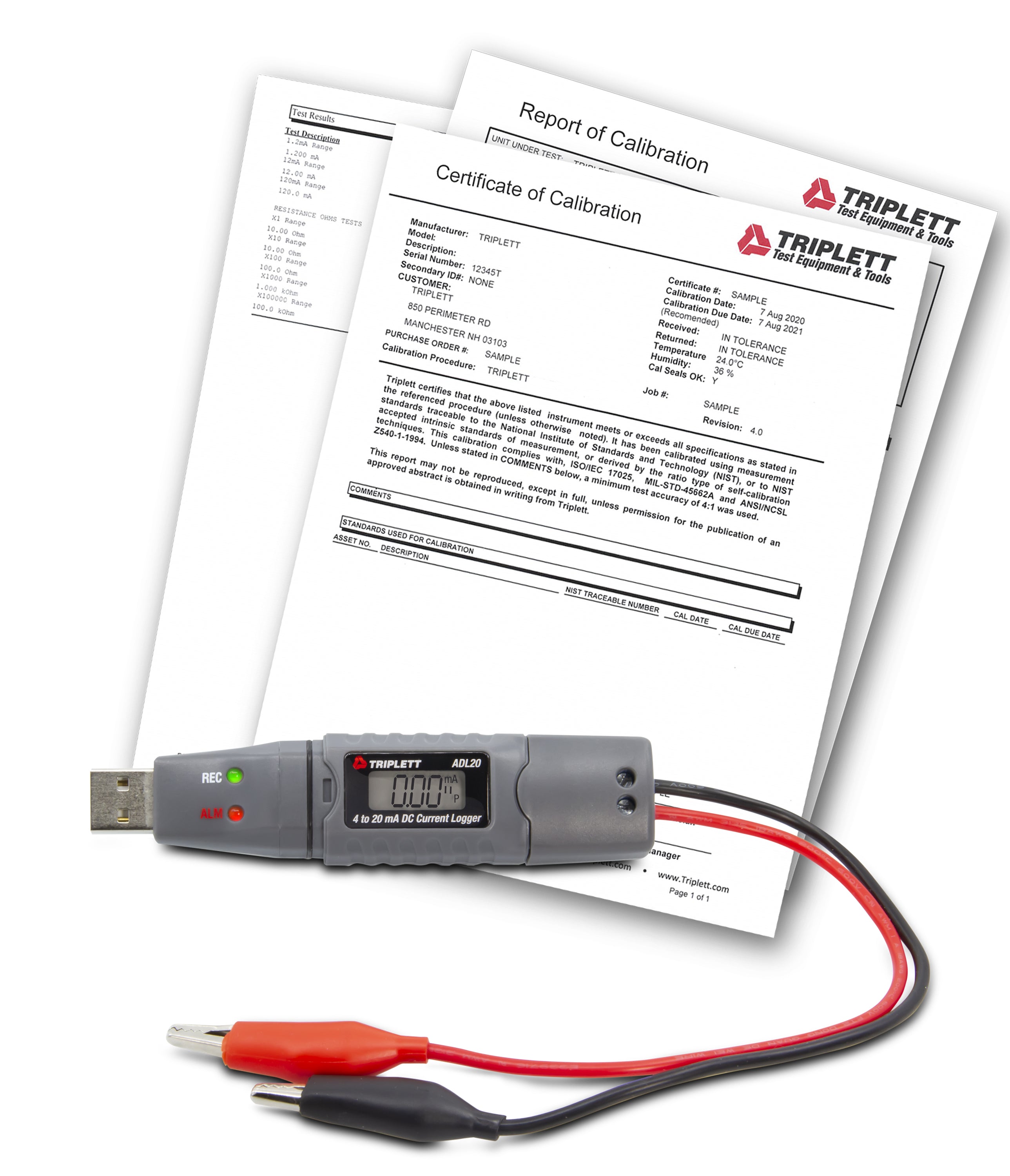 El registrador de datos USB Triplett modelo ADL20 de corriente CC de 4 a 20 mA con certificado de trazabilidad NIST es una herramienta versátil, diseñada específicamente para monitorear bucles de corriente de 4-20 mA de un solo canal. Se utiliza frecuentemente en diversas aplicaciones de control de procesos. Con capacidad para registrar hasta 31 320 lecturas de corriente CC y una frecuencia de muestreo ajustable por el usuario que va desde 1 segundo hasta 24 horas, ofrece un registro de datos completo. Incorpora alarmas visuales de nivel alto/bajo que notifican cuando se superan los parámetros predefinidos. Características adicionales como la pantalla LCD multifunción integrada de 2000 cuentas, dos indicadores LED de estado y una interfaz USB para una transferencia de datos fluida hacen de este registrador de datos una opción de primera. Incluye una batería de litio de 3,6 V, cables de prueba con pinzas de cocodrilo, tapa protectora, certificado de trazabilidad NIST y software.