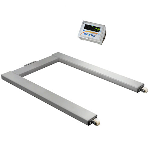 La balanza verificable en acero inoxidable es una balanza sencilla que se suministra verificada. Las mediciones de la balanza verificable con forma de U corresponden exactamente con las dimensiones de un palé EU. La balanza verificable permite una colocación rápida y sencilla, colocando la carretilla justo entre ambos largueros para dejar el palé sobre éstos. Las cuatro células de la balanza verificable tienen protección IP68 y se encuentran en las esquinas del marco. La carcasa es de un acero inoxidable macizo anticorrosivo y antiácidos. La pantalla de la balanza verificable tiene una protección IP65 y puede colocarse sobre una la mesa o fijarse a la pared. Existe la posibilidad de suministrar la balanza verificable con interfaces opcionales, como por ejemplo, RS-232, USB, LAN, 4-20 mA, etc.; se entiende que esto modificará el tipo de protección. Para un transporte cómodo de la balanza verificable, los largueros de pesaje disponen de ruedas. Las funciones de la balanza verificable son auto tara, cómputo de piezas, memoria de tara, pesaje de bruto/neto, pesaje en porcentaje, pesaje de valores límite, etc.