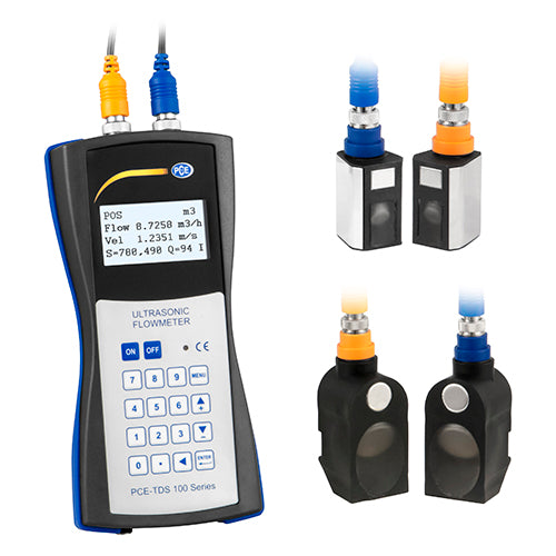 El caudalímetro por ultrasonido se usa para mediciones de control o para detectar de forma rápida el caudal en una tubería, por lo que se trata de un sistema de medición portátil y de fácil instalación. El caudalimetro por ultrasonido trabaja en base a la metodología de tiempo de tránsito. El principio de medición del caudalímetro es muy sencillo. En una medición diagonal en un tubo se necesita menos tiempo que en una medición contracorriente.
