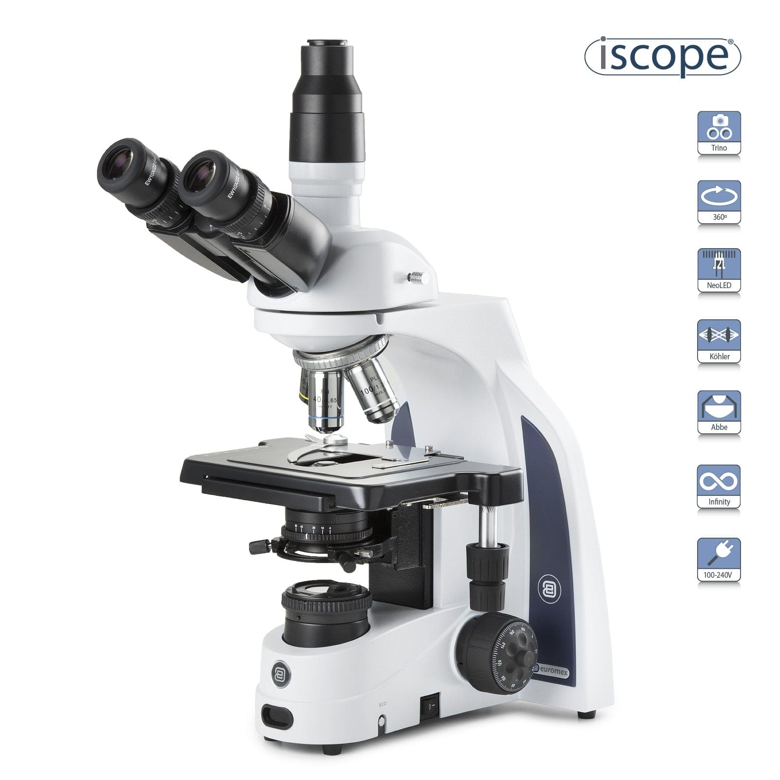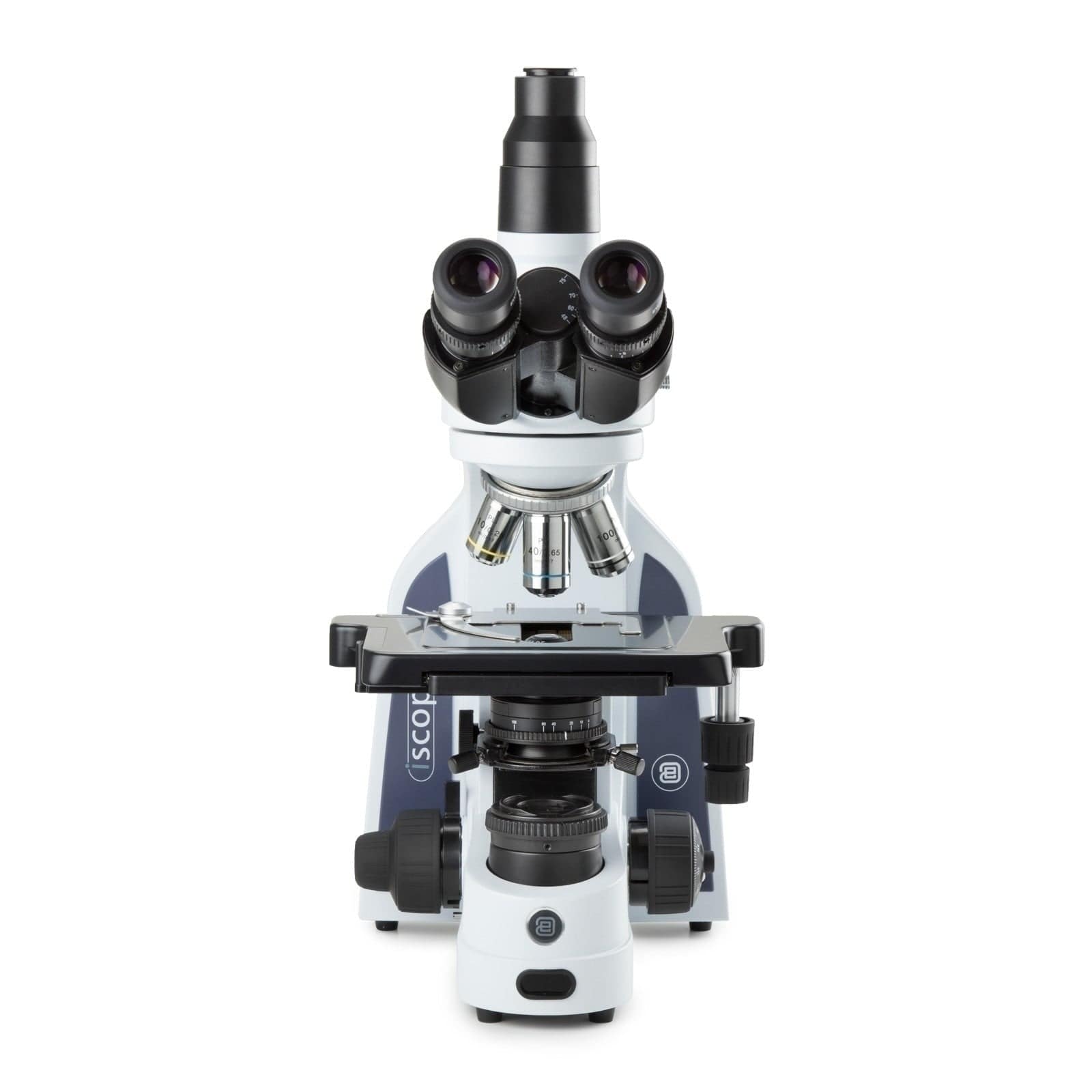 El iScope IS1153-PLI es un microscopio compuesto trinocular diseñado para ciencias de la vida y aplicaciones biomédicas. Ofrece objetivos Plan IOS con rango de aumento de 40X a 2500X y corrección infinita para imágenes de alta resolución. El cabezal Siedentopf permite ajuste de distancia interpupilar de 48 a 76 mm y tubos inclinados a 30°. El sistema de narizquinaria reversible acoge hasta cinco objetivos, facilitando cambios rápidos. La plataforma rackless mide 23 cm × 14 cm × 18,7 cm, con soporte de deslizamiento doble y movimiento mecánico preciso en X‑Y. La iluminación NeoLED de 3 W con Köhler garantiza contraste superior y bajo consumo energético. El sensor iCare apaga automáticamente la luz al ausentarse del usuario, ahorrando energía. El cable storage system integra el cable y un asa para transporte seguro.
