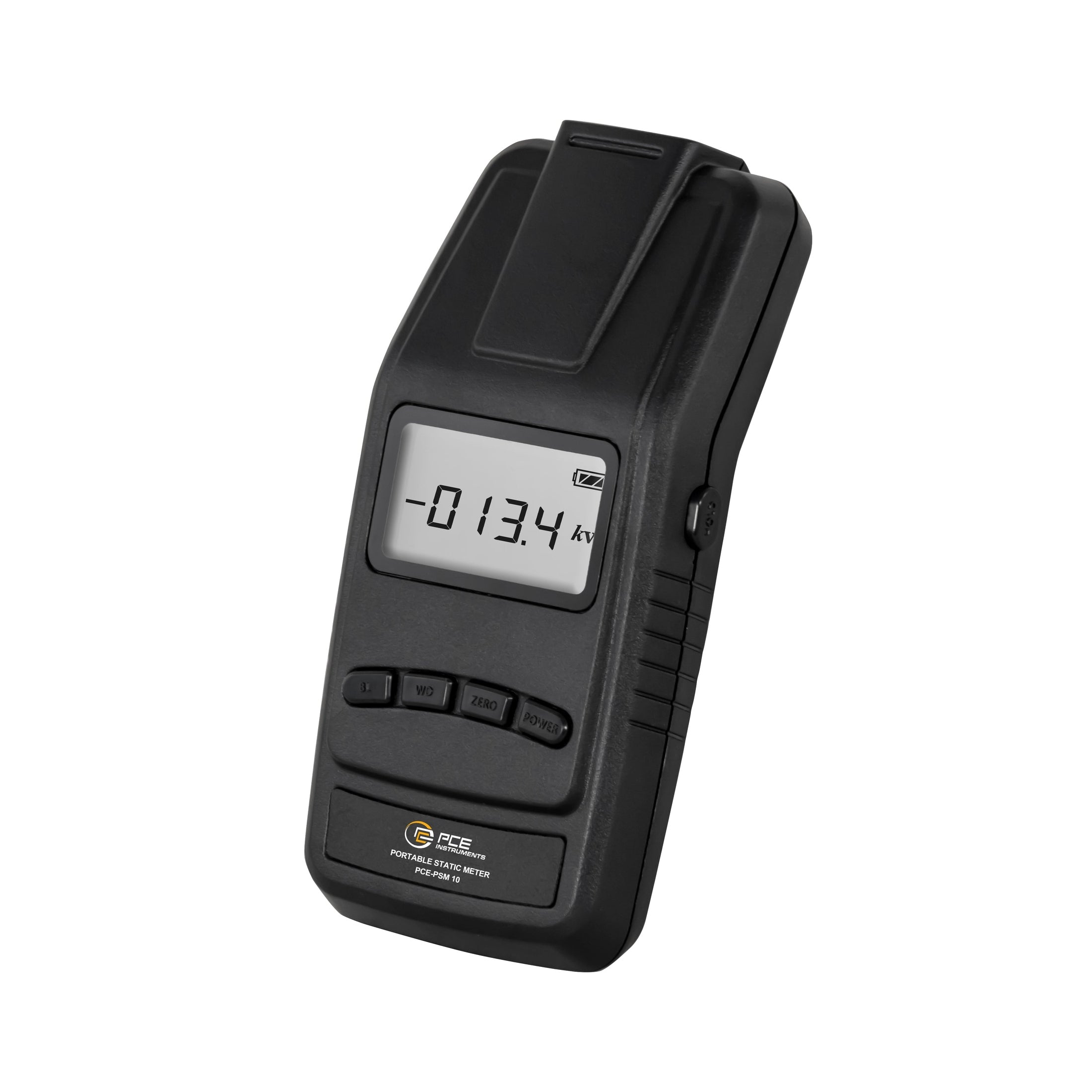 El medidor de campo electrostático mide en un rango de 0,1 a 200 kV y con una precisión de ±10 %. Es un dispositivo para detectar la tensión electrostática en la superficie de los objetos. Utiliza una tecnología de medición sin contacto para detectar el campo electrostático. El medidor de campo electrostatico integra la función HOLD para congelar el valor en pantalla, así como la función cero que puede utilizarse para poner el dispositivo a "0" antes de cada medición.