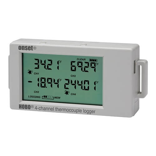 Este registrador de datos de termopar de 4 canales es ideal para medir y registrar la temperatura en una amplia gama de aplicaciones de monitoreo. Dispone de 4 entradas para termopares tipo J, K, T, E, R, S, B o N, y puede almacenar hasta 1,9 millones de lecturas de temperatura. La pantalla LCD muestra la temperatura actual y los umbrales de alarma. El dispositivo es alimentado por pilas alcalinas o de litio AAA y tiene una duración de 1 año a una frecuencia de muestreo de 1 minuto. El registrador de datos es compatible con el software HOBOware y HOBOware PRO Versión 3.5+. El dispositivo opera en un rango de temperatura de -20 °C a 70 °C y humedad de 0 a 95% HR (sin condensación). El registrador de datos de termopar de 4 canales es una herramienta versátil y fiable para medir y registrar la temperatura en各种 aplicaciones. El dispositivo también cuenta con una función de alarma que alerta cuando la temperatura supera los umbrales establecidos. La precisión del dispositivo es de ± 0,21 °C y la resolución es de 0,024 °C a 25 °C. El registrador de datos es fácil de usar y configura, y es ideal para aplicaciones de monitoreo de temperatura en campo.