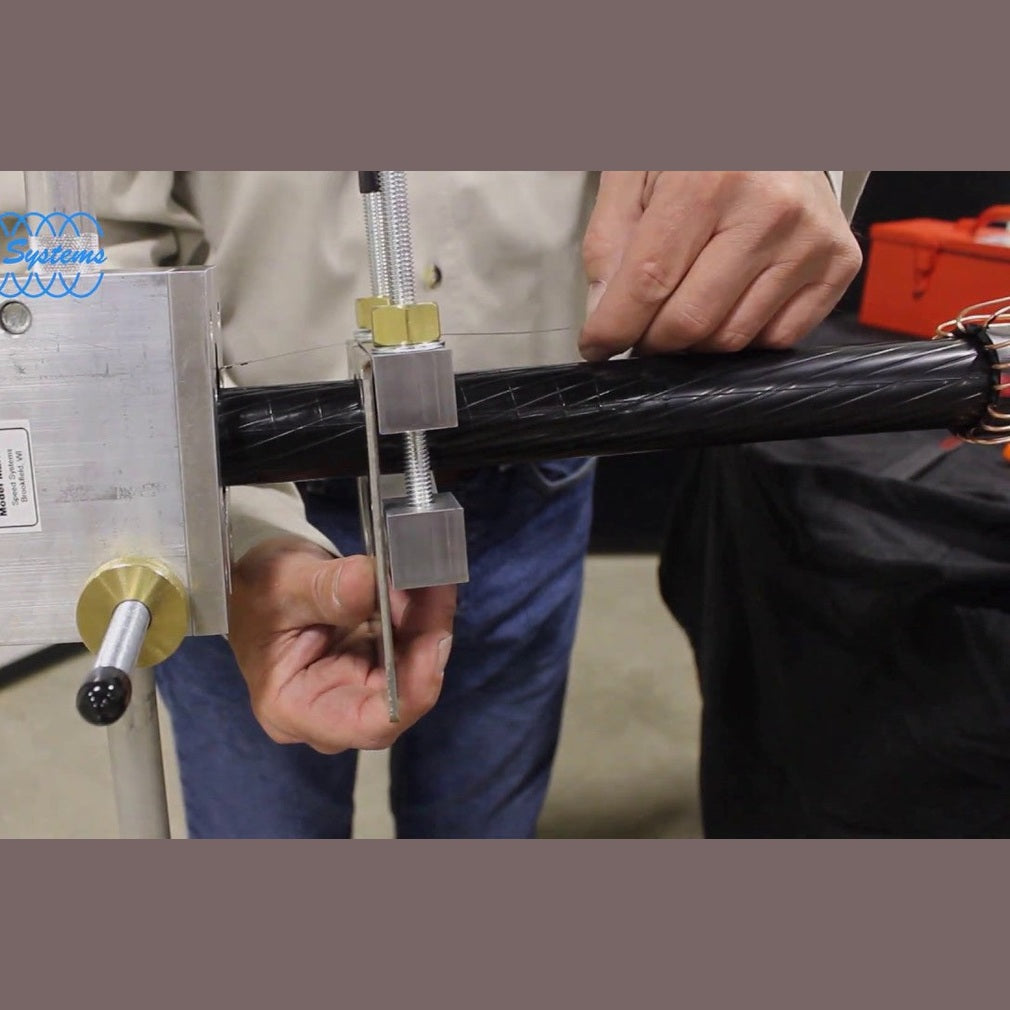 El pelacables de aislamiento Mark III de Speed Systems combina un diseño robusto con componentes de precisión. Incorpora ocho rodillos tratados térmicamente montados en ángulo para una alimentación de cable optimizada y una fricción reducida durante la rotación de la herramienta. Los marcos laterales ajustables eliminan la necesidad de bujes o adaptadores de tamaño, fijándose al cable mediante tuercas moleteadas. Incluye un accesorio de tope de herramienta para garantizar un corte cuadrado preciso en cada uso. Al posicionar el tope en el cable, se asegura un corte uniforme en la revolución final de la herramienta. Para cables con semiconductores adheridos al aislamiento, la cuchilla AO13 está diseñada para rasurar la capa semiconductora.