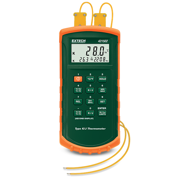 Extech 421502 Termómetro de entrada doble tipo J/K con alarma